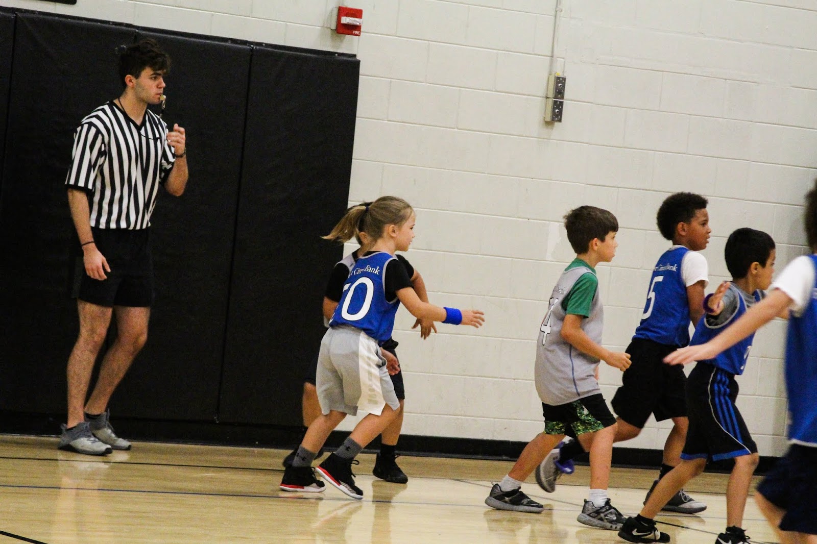 The rules are a bit different than regular basketball. You can't steal the ball unless it has been lost, you have to find your matching color wrist band and that is who you guard and there are no free throw shots. They run 4 quarters and each kid must be subbed in every 4 minutes. They allow for minor infractions like a little bit of double dribble or traveling as the kids are still learning the game.